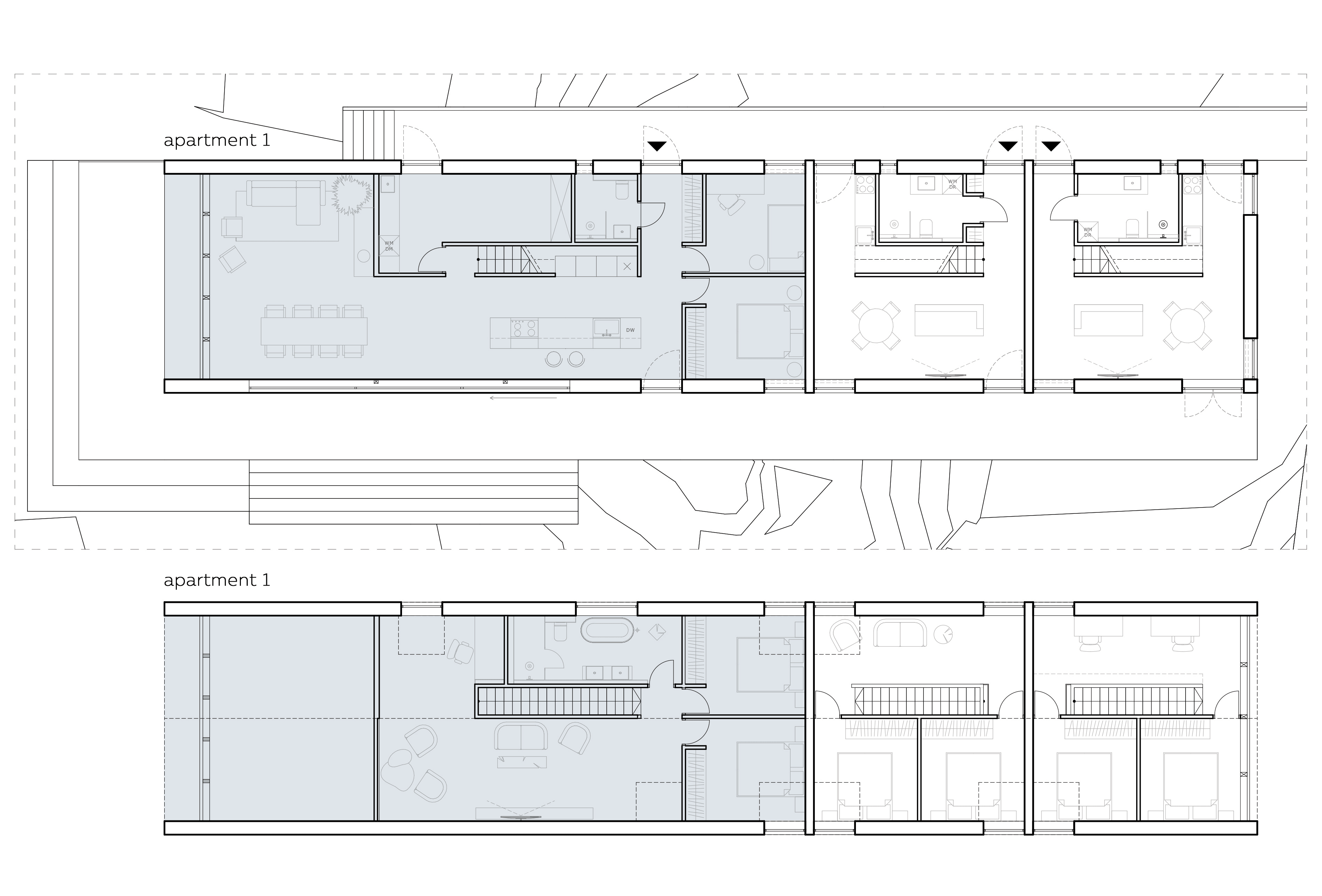 ENG The house is situated in the suburban area of Oslo, Norway. The project itself has 2 floors with a total space of 360 sq.m., The house is divided into 3 apartments, one for the owner itself and others for the tenants.